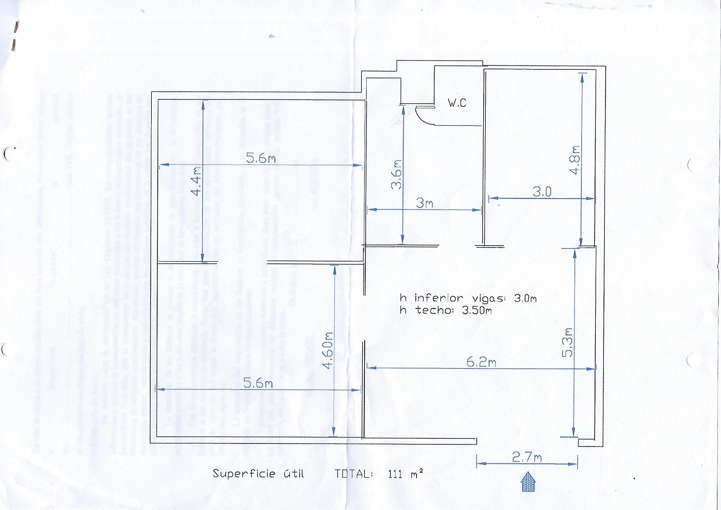Lonja de 110m2 rectangular con varias divisiones, 3m de altura.